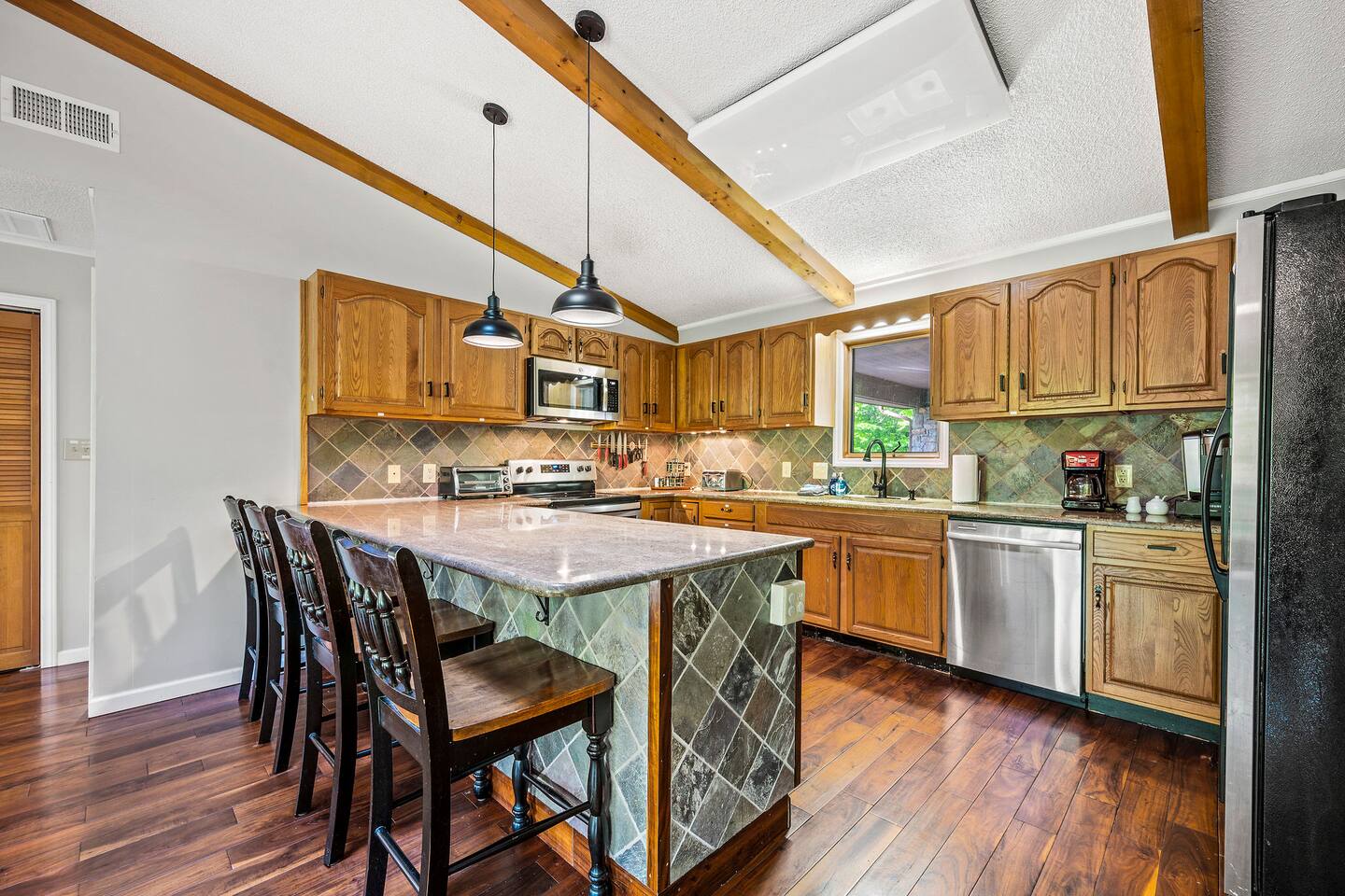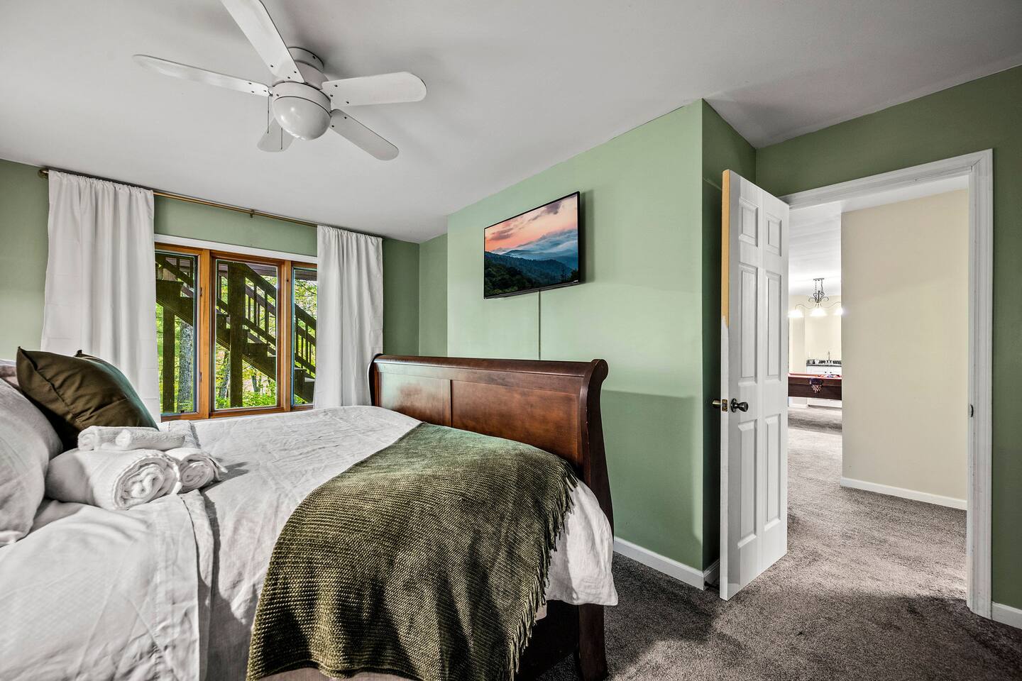 During your stay, you will enjoy exclusive access to the entire house, ensuring a truly private and comfortable experience. The house offers a wide range of amenities for your entertainment pleasure, including six televisions and a state-of-the-art sound system that will enhance your enjoyment. For a cozy and immersive movie experience, we invite you to unwind in our dedicated movie room, complete with a movie theatre popcorn machine. Families with children will find our kids' room to be a haven of fun and excitement, as it is fully stocked with a diverse selection of toys that will keep little ones engaged and entertained throughout their stay. Furthermore, as our valued guests, you will have access to the community pool and tennis courts, perfect for some friendly competition and outdoor enjoyment. The property itself is nestled within expansive acreage, providing ample opportunities for exploration and adventure. Discover numerous hiking trails that wind through breathtaking mountain landscapes, allowing you to immerse yourself in the beauty of nature. Younger guests will be delighted by the swing set, while basketball enthusiasts can engage in friendly games on the outdoor basketball courts. There truly is something for everyone at this stunning mountain retreat. Rest assured that your stay will be filled with memorable moments and endless opportunities for relaxation and recreation.